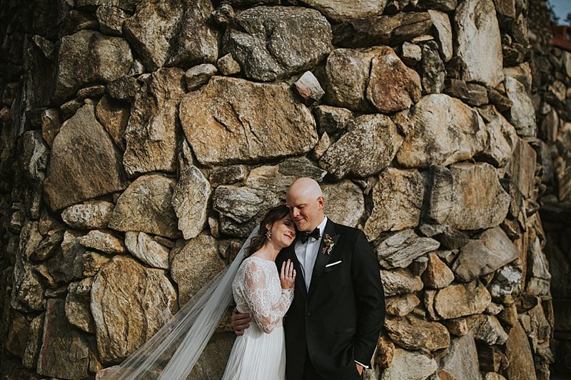 Jackie and Matt had such a lovely wedding at the Grove Park Inn this Winter. Their Grove Park Inn wedding was held outside on this warm December day. Their ceremony took place at the Country Club on the golf course and the reception took place at their new beautiful Seely Pavilion. To begin, we started their day out with first looks on the beautiful Vanderbilt Terrace. I just loved capturing them snuggling up in front of those iconic rock walls that are so unique to the Omni Grove Park Inn. We then walked down the stairs along the Sunset Terrace taking in the long range views beyond the golf course and spa. We also planned the day to make sure we had a little extra time to walk over to the stunningly beautiful- yet abandoned- estate on the property for some epic wedding day photos.